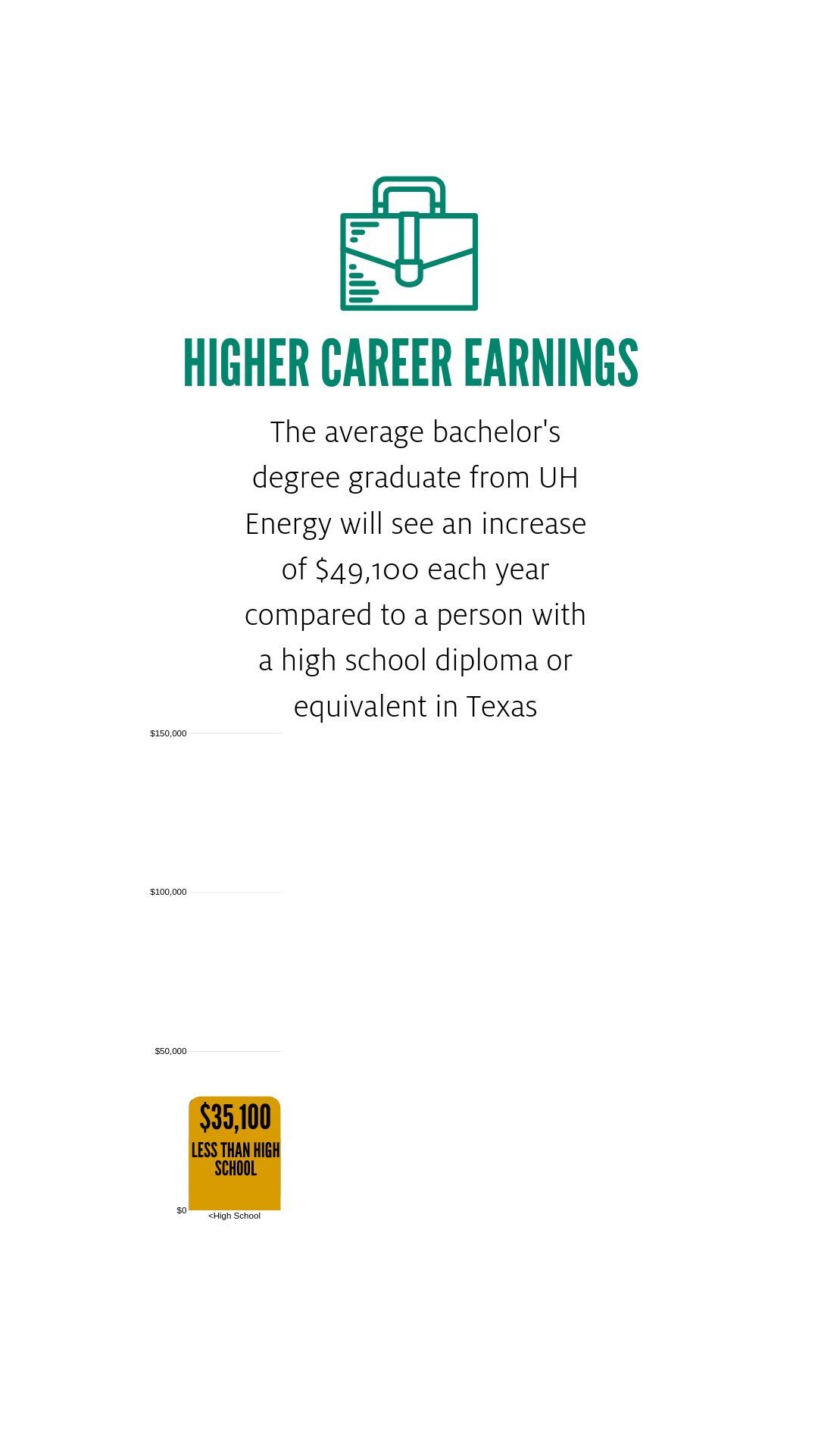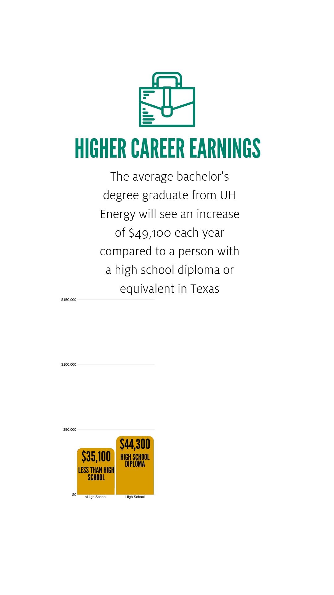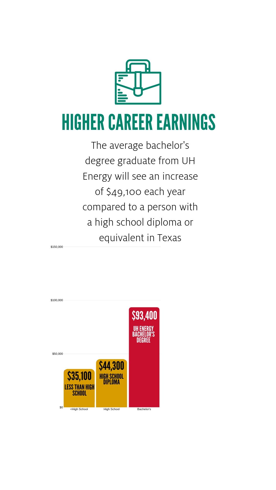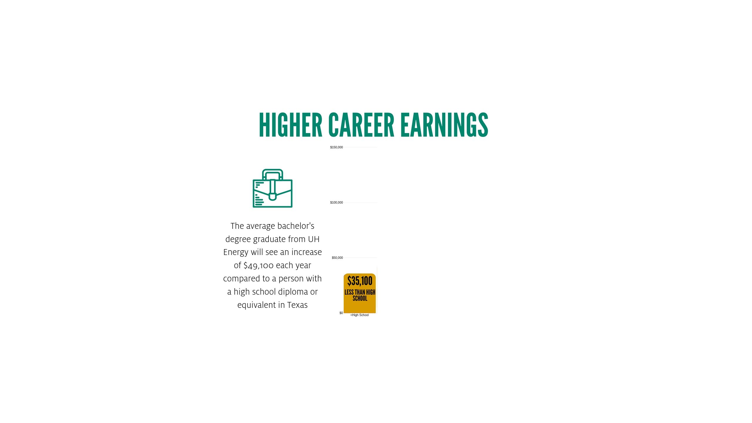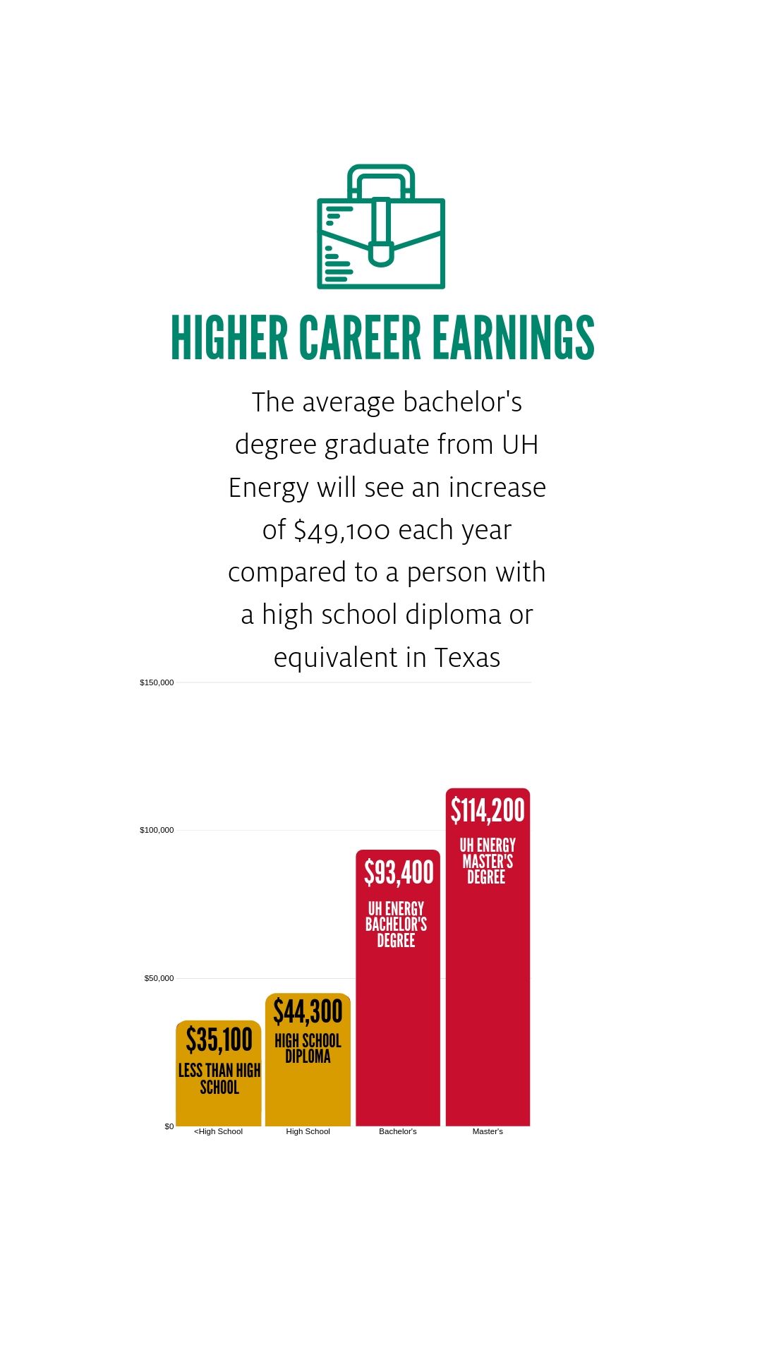For students pursuing energy-related fields at the University of Houston, the return on investment is compelling. These students will earn salaries that are, on average, 111% greater than those of high school graduates.